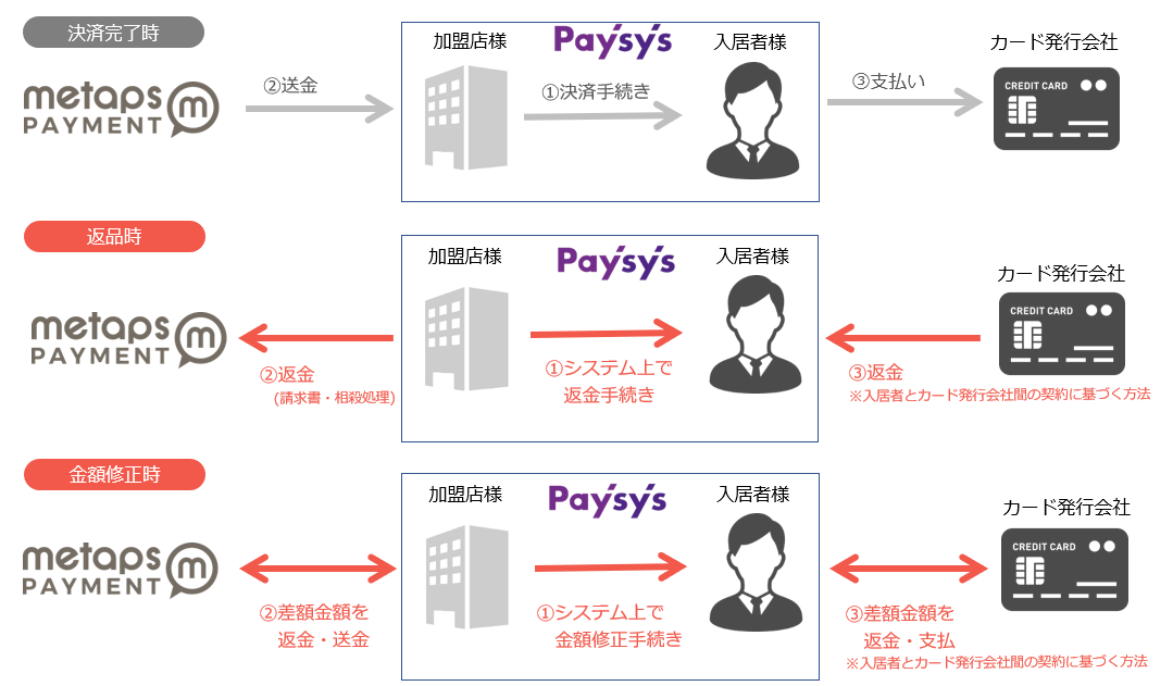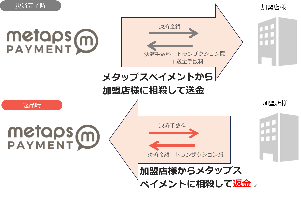 返品が発生した場合は、その決済に伴う決済手数料を当社から加盟店様に返金いたします。